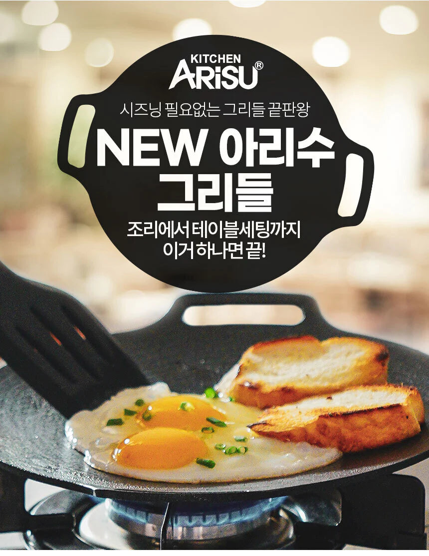 🇰🇷人気のARISU 鋳物グリドル(IH版) 無釉年輪グリルパン 底面無釉お手入れ簡単鍋
