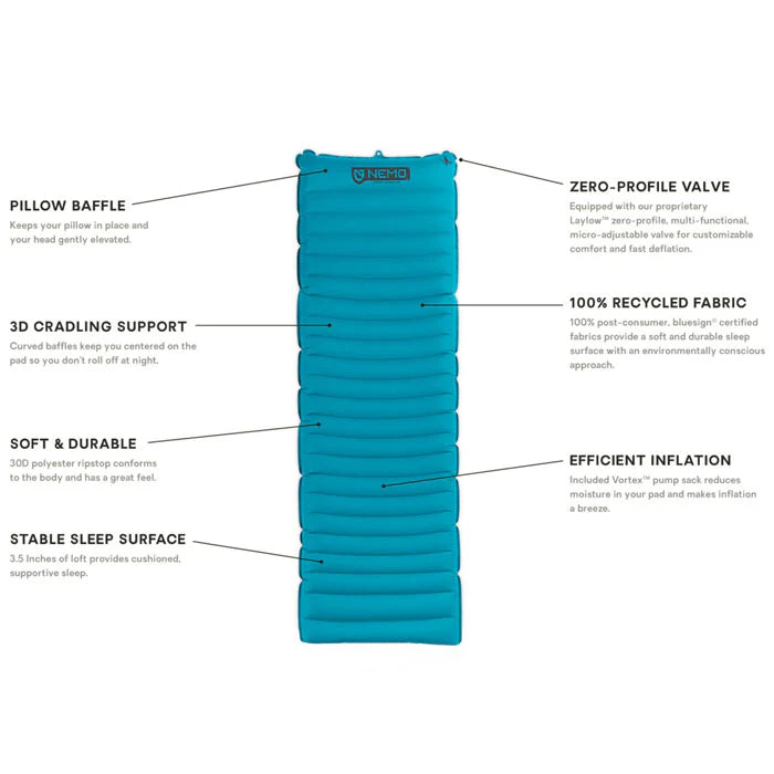 米国製の Nemo Quasar 3D レギュラー スリーピングパッド キャンプ用インフレータブル スリーピングマットは快適です。