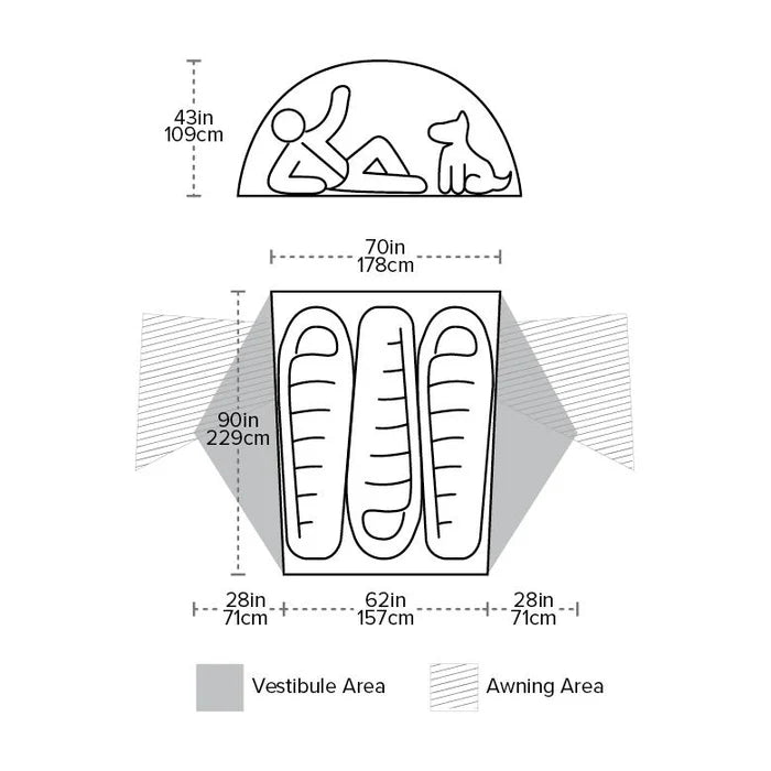フライシートとベース:独自の超軽量シリコン処理ナイロン、 1200mmポリエステル防水コーティング テント本体は、通気性に優れたナイロンとポリエステルメッシュをブレンドした独自の超軽量二層リップストップ生地です。 すべての縫い目は防水性のある無溶剤ポリウレタンテープでテープ処理されています( PVCやVOCは使用していません)。 8つの内部ユーティリティメッシュポケット、 4つの携帯電話/タブレット用ポケット、10本のDAC超軽量アルミニウムキャンプペグと4本のロープ 装備用スリングが付属 |