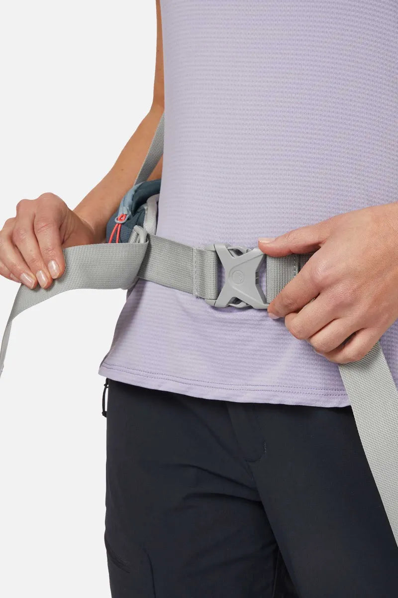バックパックには、デュアルエントリーのデュアルコンパートメントやジッパー付きコンパートメントなど、さまざまな収納オプションが備わっているため、濡れたギアを別々に保管できます。パック前面の SpiderPlate 伸縮システムは追加レイヤーの保管に最適で、ジッパー フラップとストラップ ポケットはスナックの保管に最適です。長期旅行の場合は、拡張可能な蓋により 5 リットルの追加のパッキングスペースが提供され、必需品を扱うときに荷物を柔軟に調整できます。ポールアタッチメントやピッケルループを使用して装備をパックの外側に簡単に保管でき、濡れた状況でもすぐに展開できるレインカバーが付いています。ストレッチメッシュのウォーターボトルサイドポケットと 3 リットルの水袋を収納できるスペースにより、急なトレイルでも水分補給が可能です。