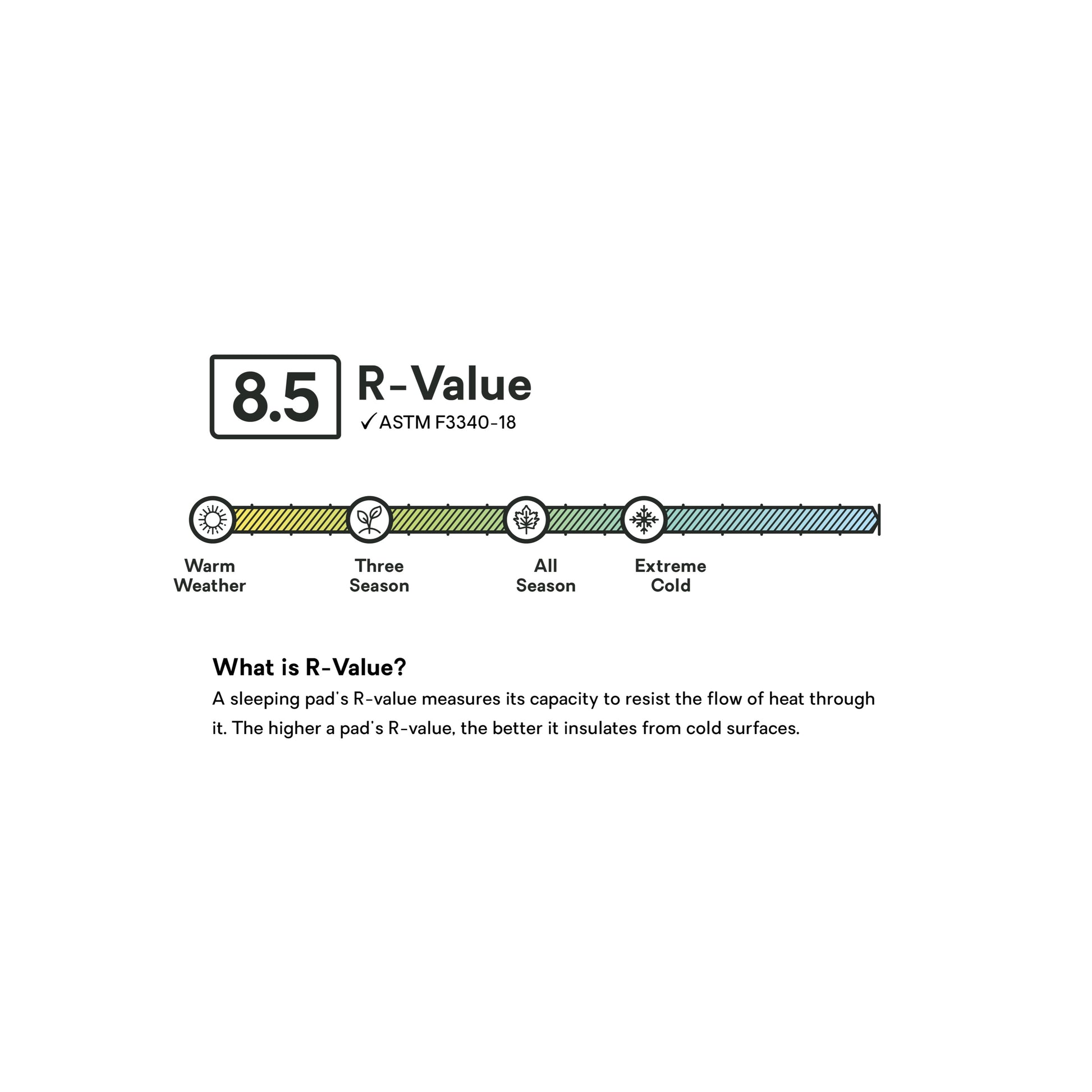 Tensor™ Extreme代表了 NEMO 野外墊創新的新篇章。Tensor™ 採用我們標誌性的專有 Spaceframe 擋板結構構建,在超輕量包裝中提供安靜、支撐性的舒適感。內部架構提供了無與倫比的穩定性和重量分佈,使用低拉伸模切桁架消除彈性,同時保護手肘和臀部免於刺入地面。在競爭市場中脫穎而出,實現了 8.5 的 R 值和令人難以置信的保暖重量比。