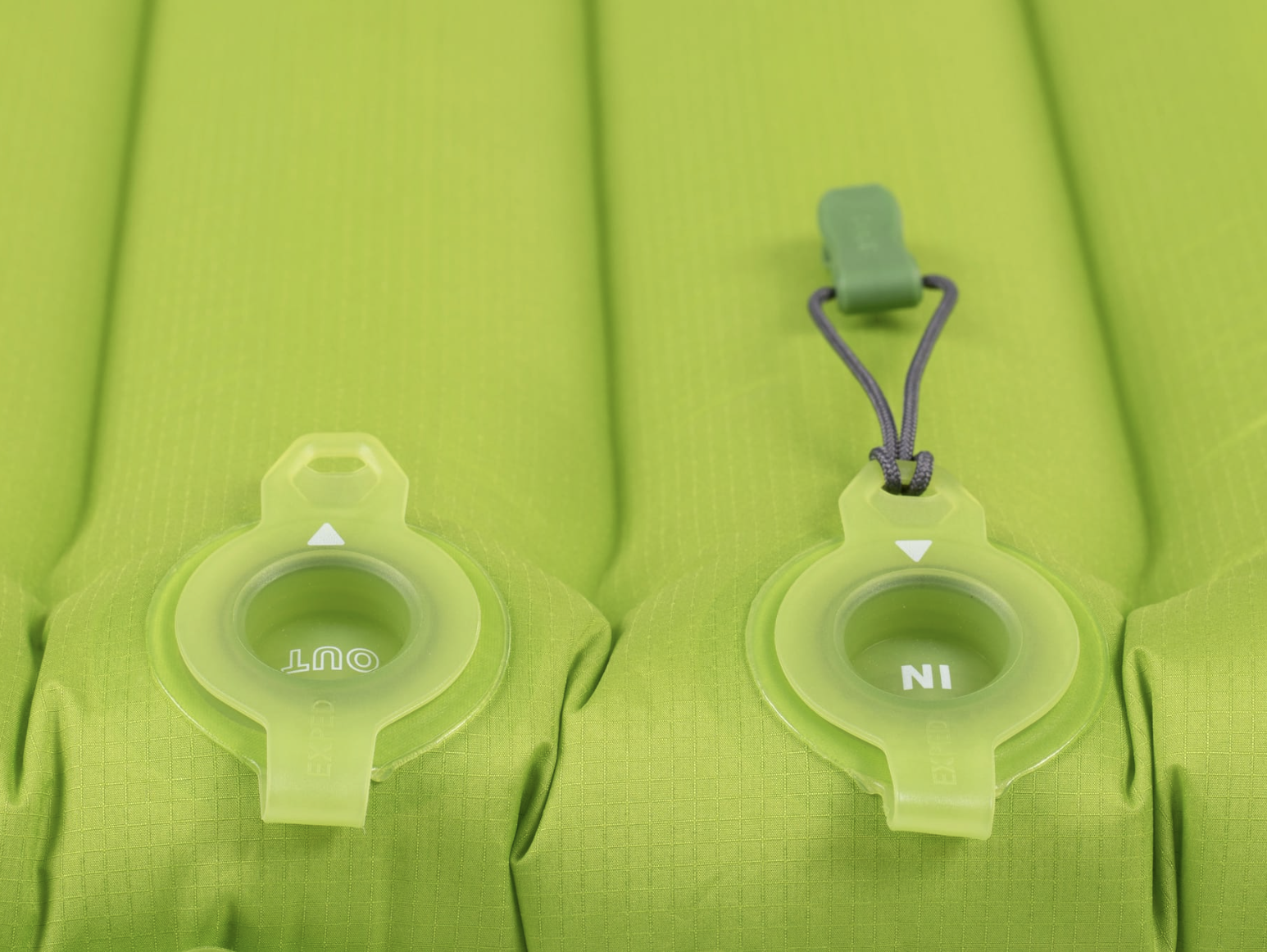 - 充氣地墊分兩個獨立氣室,每個部分都有獨立的充氣閥和放氣閥