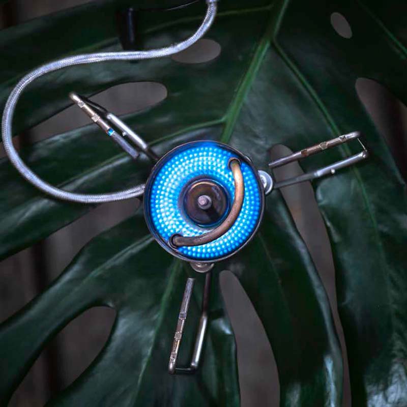 這款易於折疊的不銹鋼、鋁和黃銅爐具帶有防滑鍋支架、軟管、燃料容器和燃料支架控制器,重量為 443 克,適用於液體或燃氣。附贈中型 480 毫升燃油瓶。