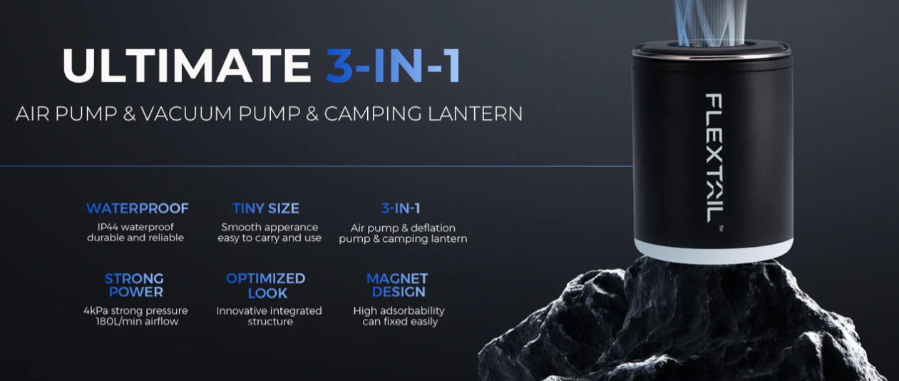 為了提供完美的戶外和旅程體驗,十年來,FLEXTAILGEAR 不斷努力突破,致力於打造創新卓越的輕量化露營和旅行用具,所以這次帶來了最小的 3 合 1 防水氣泵 & 真空泵 & 野營燈 。