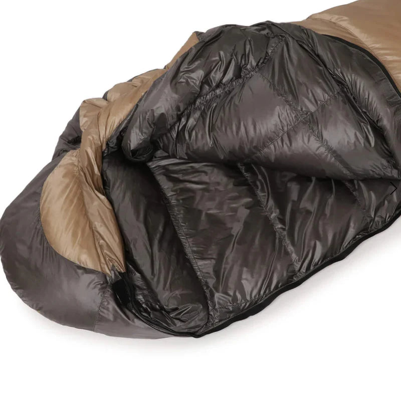 睡袋使用箱型立體隔間構造,加強了空間感和保暖度,讓羽絨有效蓬鬆擴展,提供 -5℃帳內環境舒適保暖力, 下限溫度 -10℃。